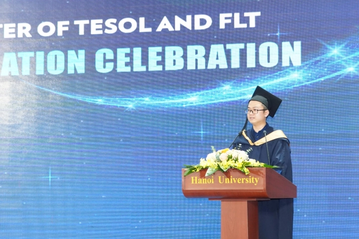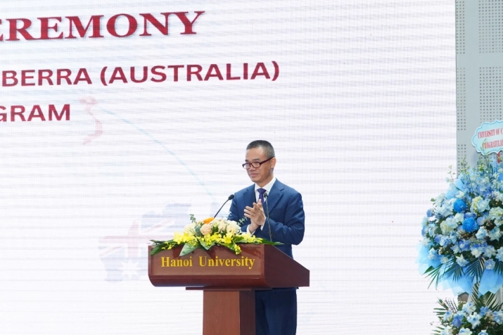 Phát biểu tại chương trình, Hiệu trưởng Nguyễn Văn Trào gửi lời chúc mừng tới 75 tân thạc sĩ của Chương trình đào tạo Thạc sĩ chuyên ngành Lí luận và Phương pháp giảng dạy tiếng Anh và tiếng nước ngoài (Master of TESOL and FLT) khóa 5 và khóa 6 đã hoàn thành xuất sắc chương trình học. Hiệu trưởng cũng gửi lời cảm ơn tới gia đình các tân thạc sĩ đã hỗ trợ các học viên của chương trình trong suốt hai năm qua. Hiệu trưởng Nguyễn Văn Trào khẳng định: Lễ tốt nghiệp hôm nay là cột mốc đánh dấu sự hợp tác hiệu quả giữa hai Trường. Chương trình đã liên tục duy trì thành tích đáng ngưỡng mộ về chất lượng, tính chặt chẽ, và tiếp tục đóng góp đáng kể vào việc mở ra các cơ hội giảng dạy cho học viên tốt nghiệp cũng như sự phát triển chung của giáo dục ngôn ngữ tại Việt Nam. Nhân sự kiện này, thay mặt Trường Đại học Hà Nội, Hiệu trưởng Nguyễn Văn Trào chân thành gửi lời cảm ơn tới Bộ Giáo dục và Đào tạo Việt Nam, Đại sứ quán Australia tại Hà Nội đã hỗ trợ kịp thời và quý giá cho chương trình, cảm ơn ban lãnh đạo khoa Giáo dục, Đại học Canberra đã đồng hành cùng Trường Đại học Hà Nội với tinh thần trách nhiệm cao để duy trì và phát triển chương trình.