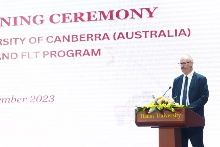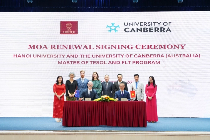 Chương trình đào tạo Thạc sĩ chuyên ngành Lí luận và Phương pháp giảng dạy tiếng Anh và tiếng nước ngoài (Master of TESOL and FLT) liên kết giữa Trường Đại học Hà Nội và Đại học Canberra bắt đầu triển khai từ cuối năm 2018. Sau năm năm hợp tác, GS. Barney Dalgarno và PGS.TS Nguyễn Văn Trào đại diện cho hai Trường đã ký gia hạn thỏa thuận hợp tác.