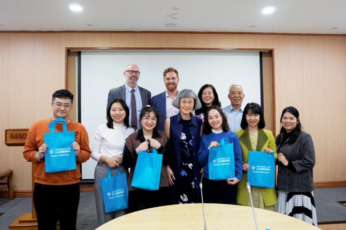 HANU - Vừa qua, Trường Đại học Hà Nội và Đại học Canberra (Australia) đã họp tổng kết Chương trình liên kết đào Thạc sĩ chuyên ngành Lí luận và Phương pháp giảng dạy tiếng Anh và tiếng nước ngoài (HANU-UC MTESOL & FLT) theo hình thức trực tiếp kết hợp với trực tuyến.