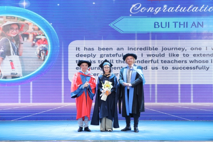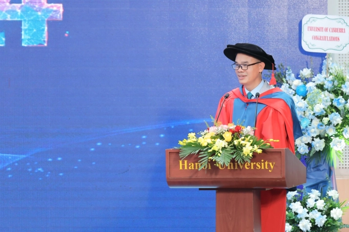 PGS.TS Nguyễn Văn Trào – Hiệu trưởng Trường Đại học Hà Nội, đã chúc mừng các tân thạc sĩ vì những thành quả đạt được sau quá trình nỗ lực học tập. Trích dẫn câu nói “Hành trình ngàn dặm bắt đầu từ một bước đi”, PGS nhắn nhủ rằng nền tảng học tập vững chắc sẽ là bàn đạp cho sự thành công trong tương lai. PGS Nguyễn Văn Trào cũng nhấn mạnh thành tựu hợp tác bền vững giữa Trường Đại học Hà Nội và Đại học Canberra suốt 6 năm, với hơn 700 học viên tham gia và 263 Thạc sĩ tốt nghiệp, khẳng định bằng cấp được công nhận toàn cầu trong lĩnh vực giảng dạy tiếng Anh và ngoại ngữ.